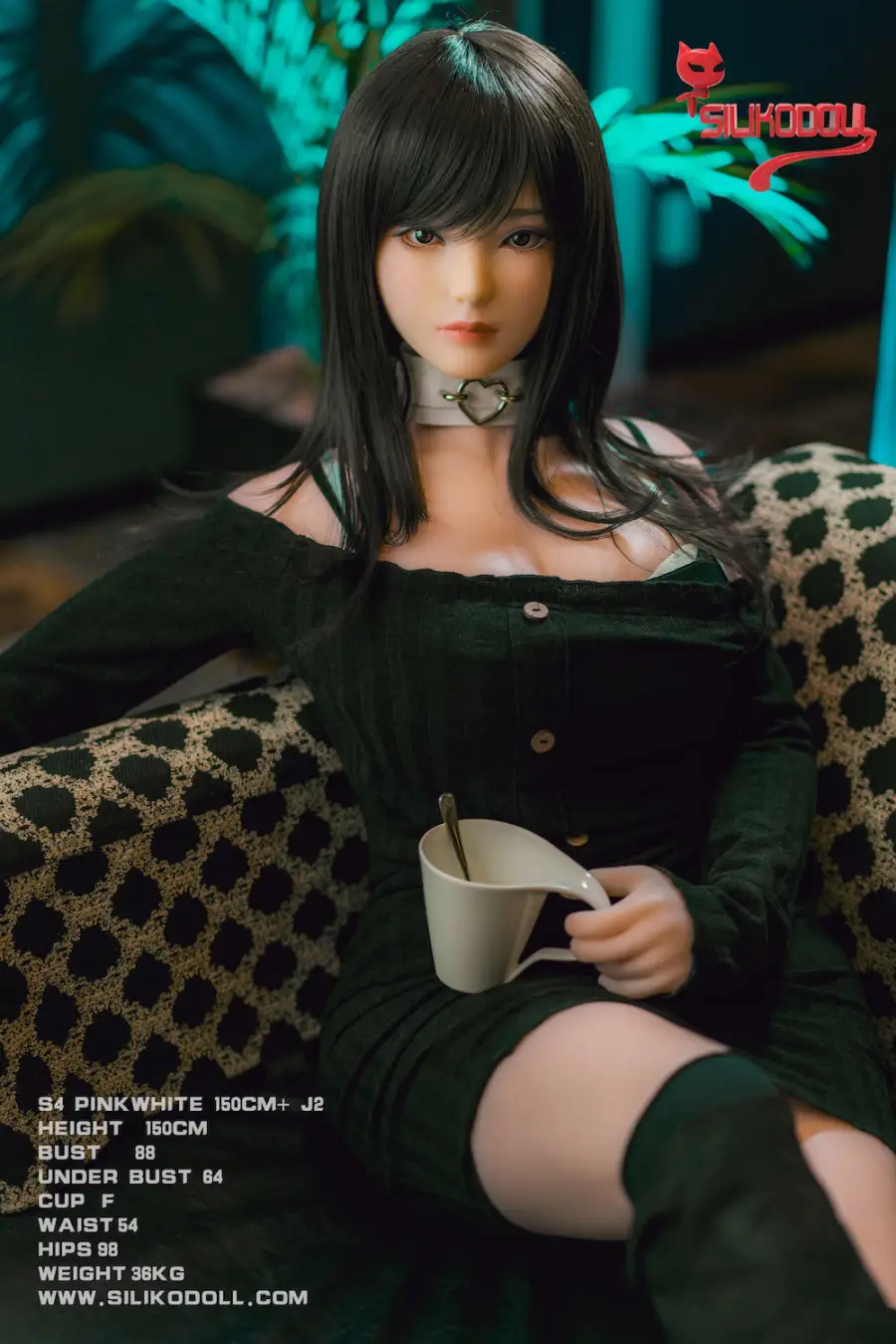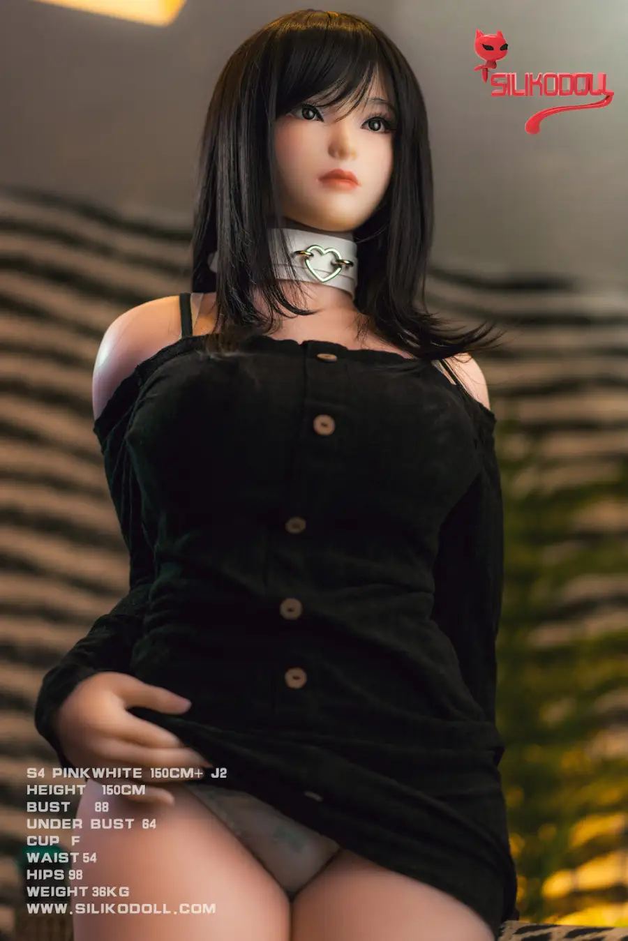 Brand: Siliko Doll Height: 150cm Head: J2 Skin: Pink White Material: Silicone Cup:Bust: 88cm Under Bust: 64cm Waist: 54cm Hips: 98cm Leg Length: 79cm Arm Length: 46.5cm Weight: 36kg Oral penetration: None Vagina Depth: 16cm Anal Depth: 14cm